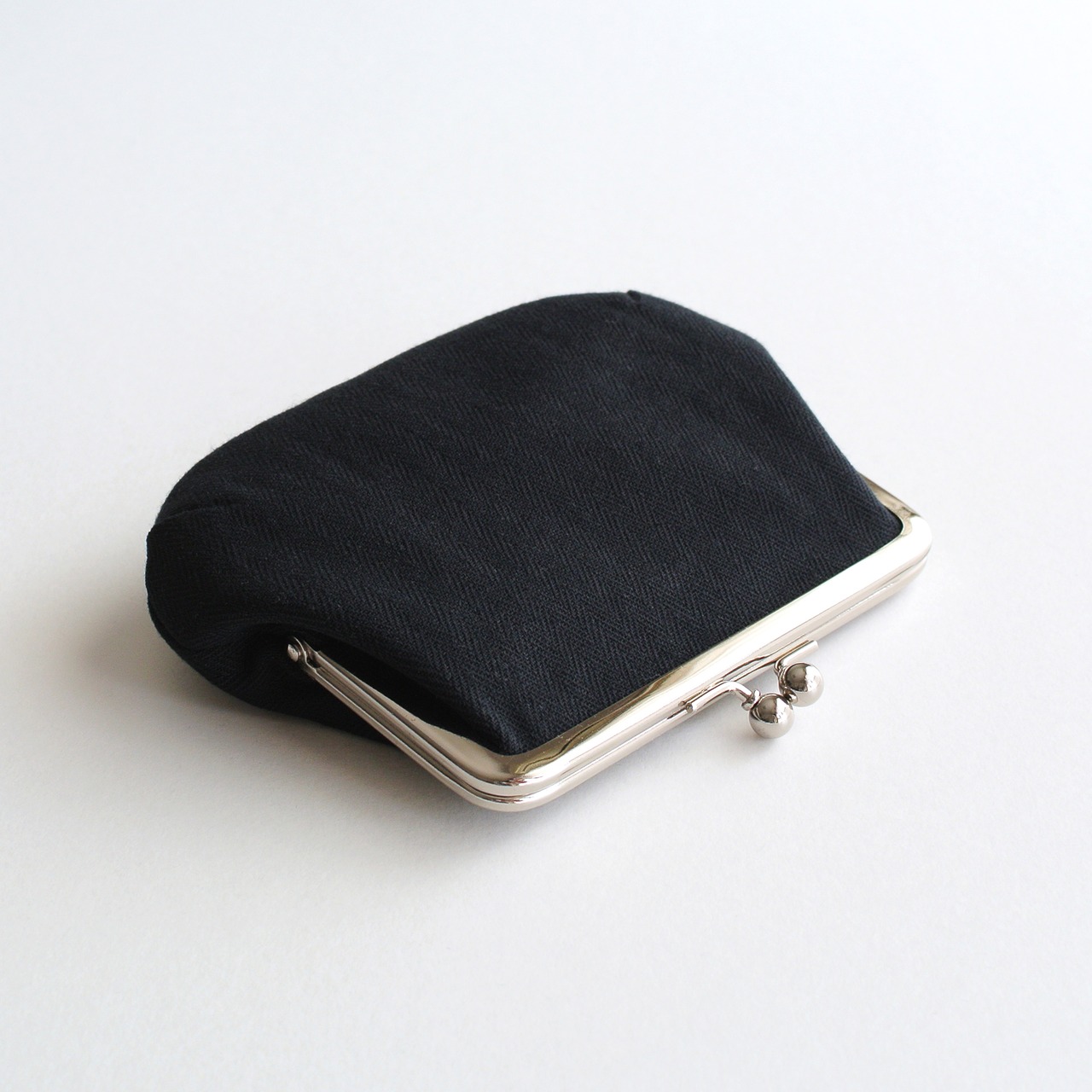 《アウトレット》ぷっくり/カードポケットつき親子がま口(お財布)/ヘリンボーンブラック