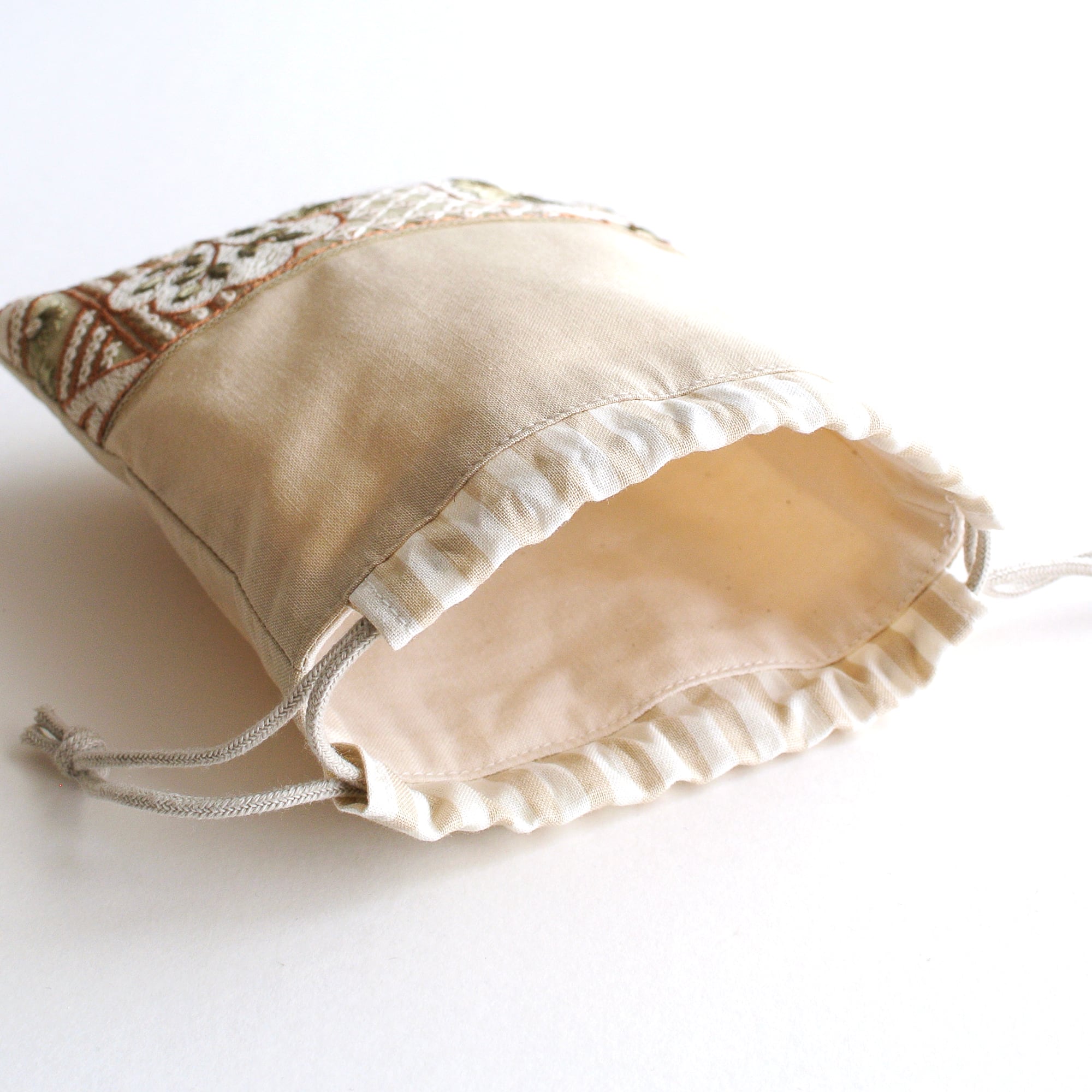 インド刺繍リボンのミニ巾着 ライトベージュ