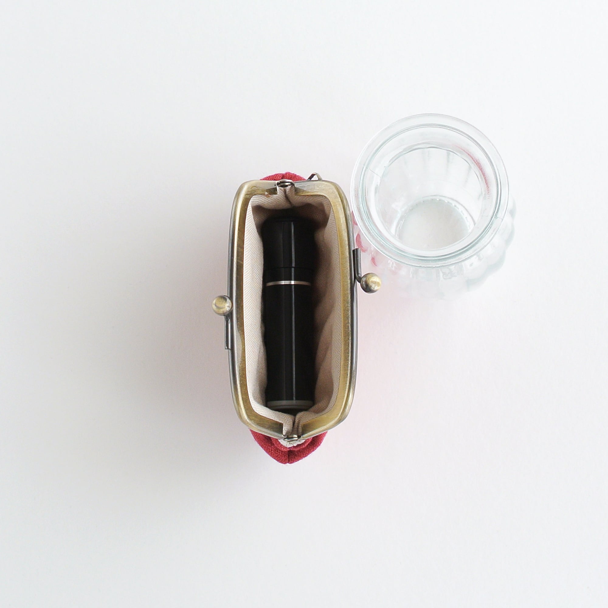 ミニマルシリーズに使用している口金は横幅約7.5cm、こちらの口金は横幅約9cmなので収納できるもののバリエーションがちょっぴり広がります