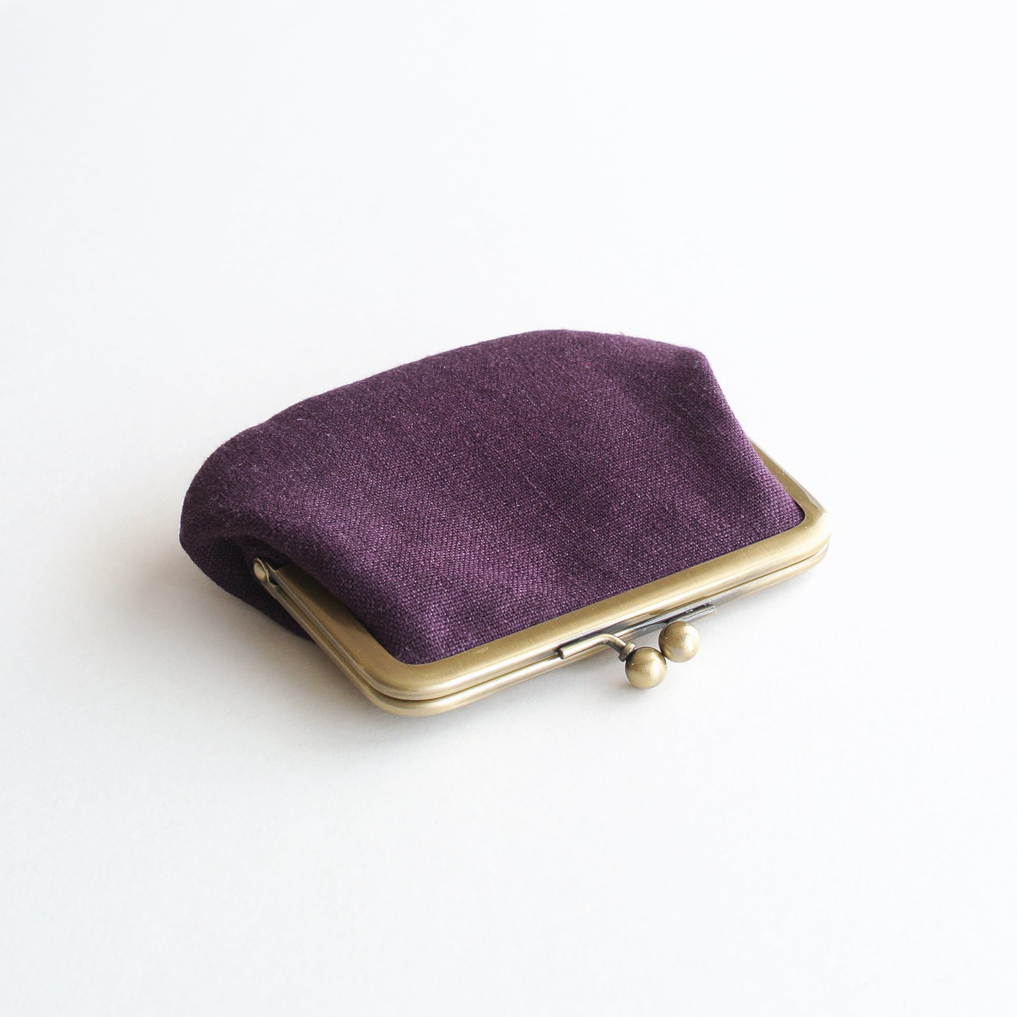 リネンとインド刺繍リボンのシンプルながま口 パープル