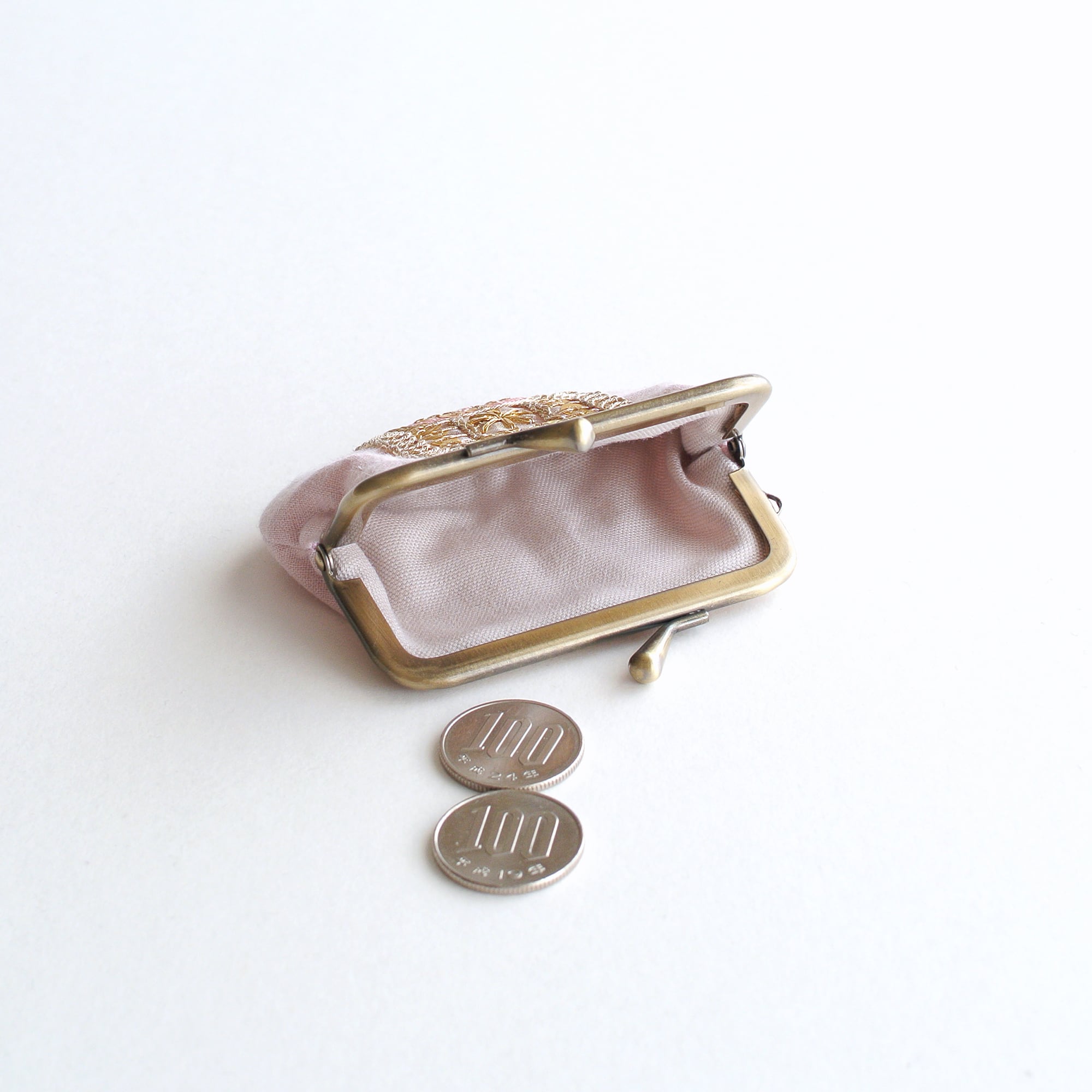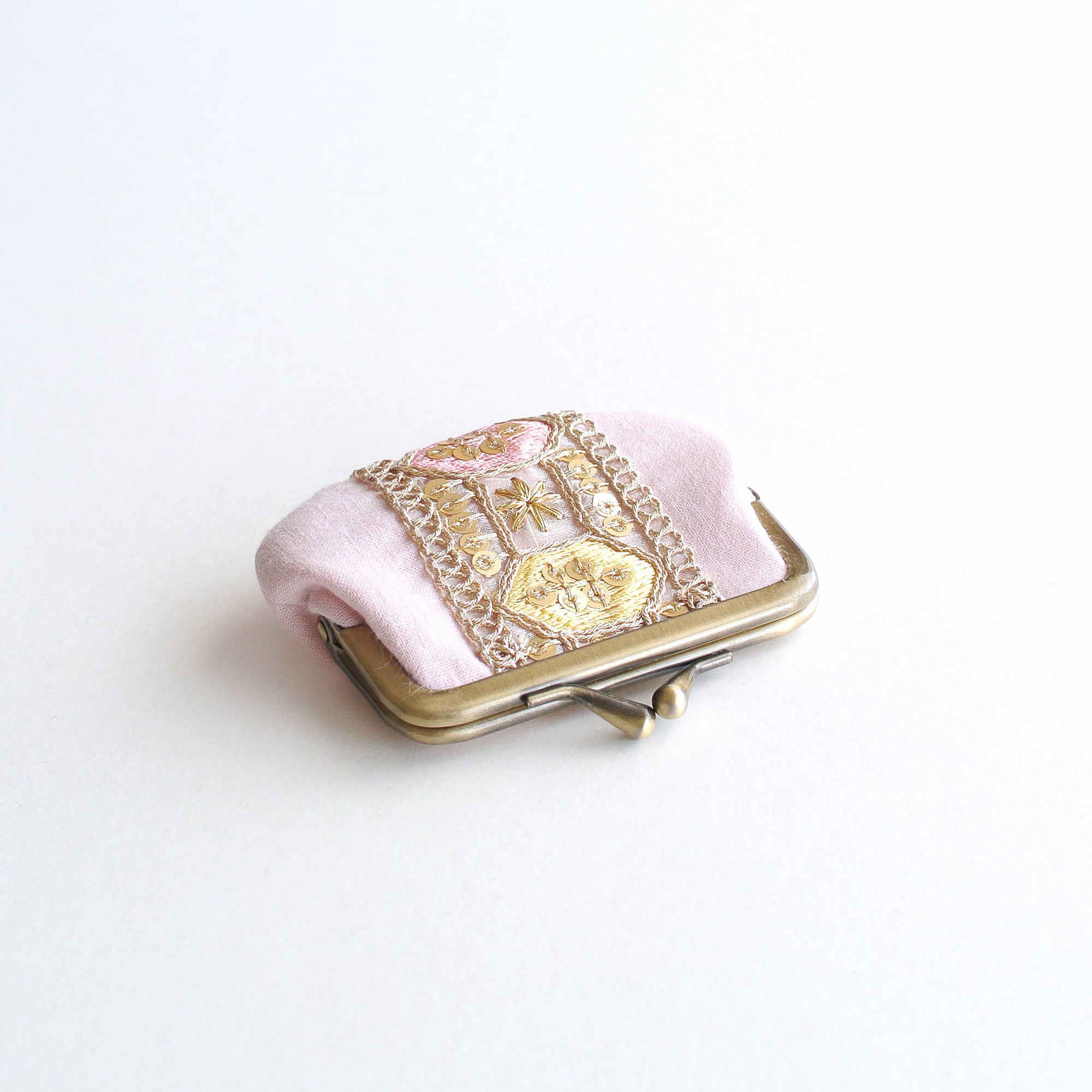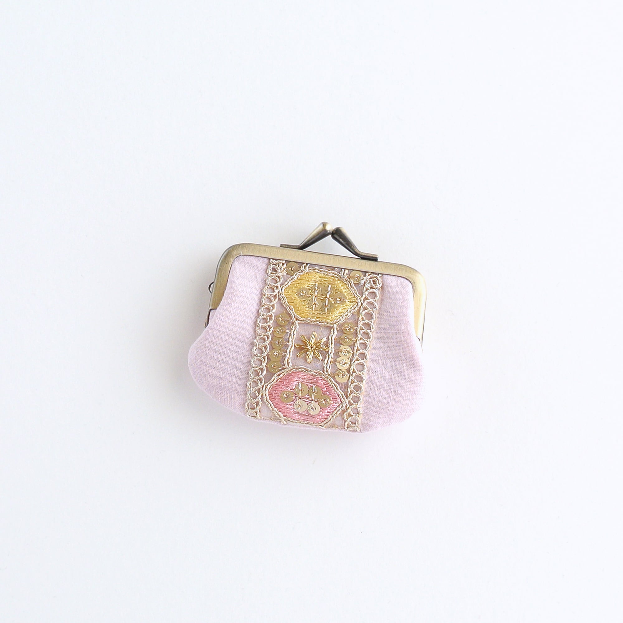 インド刺繍リボンのミニがま口 ピンク