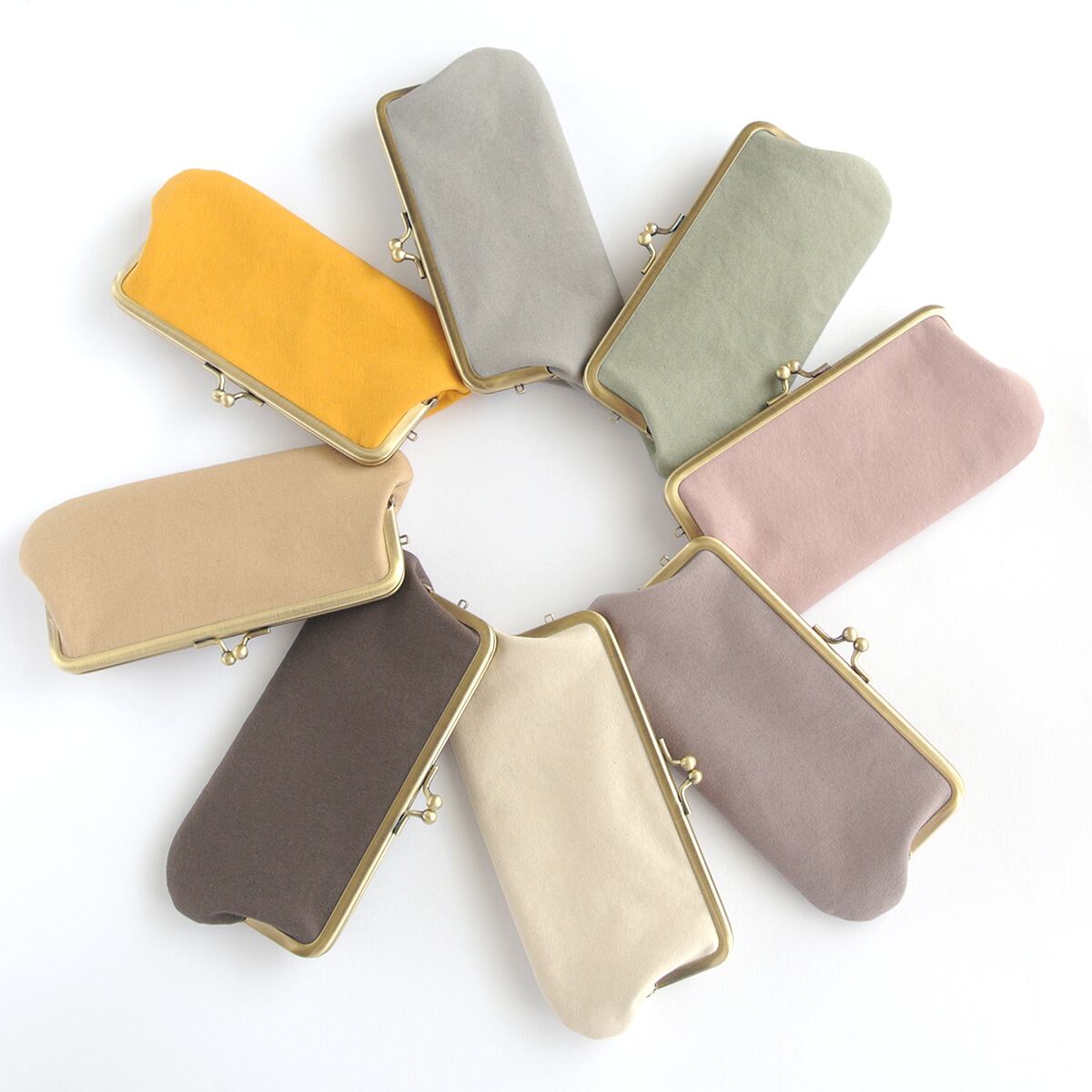 くったり感が魅力の上質なコットンキャンバス生地の横長がま口ポーチ