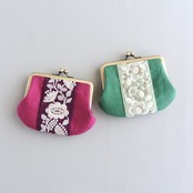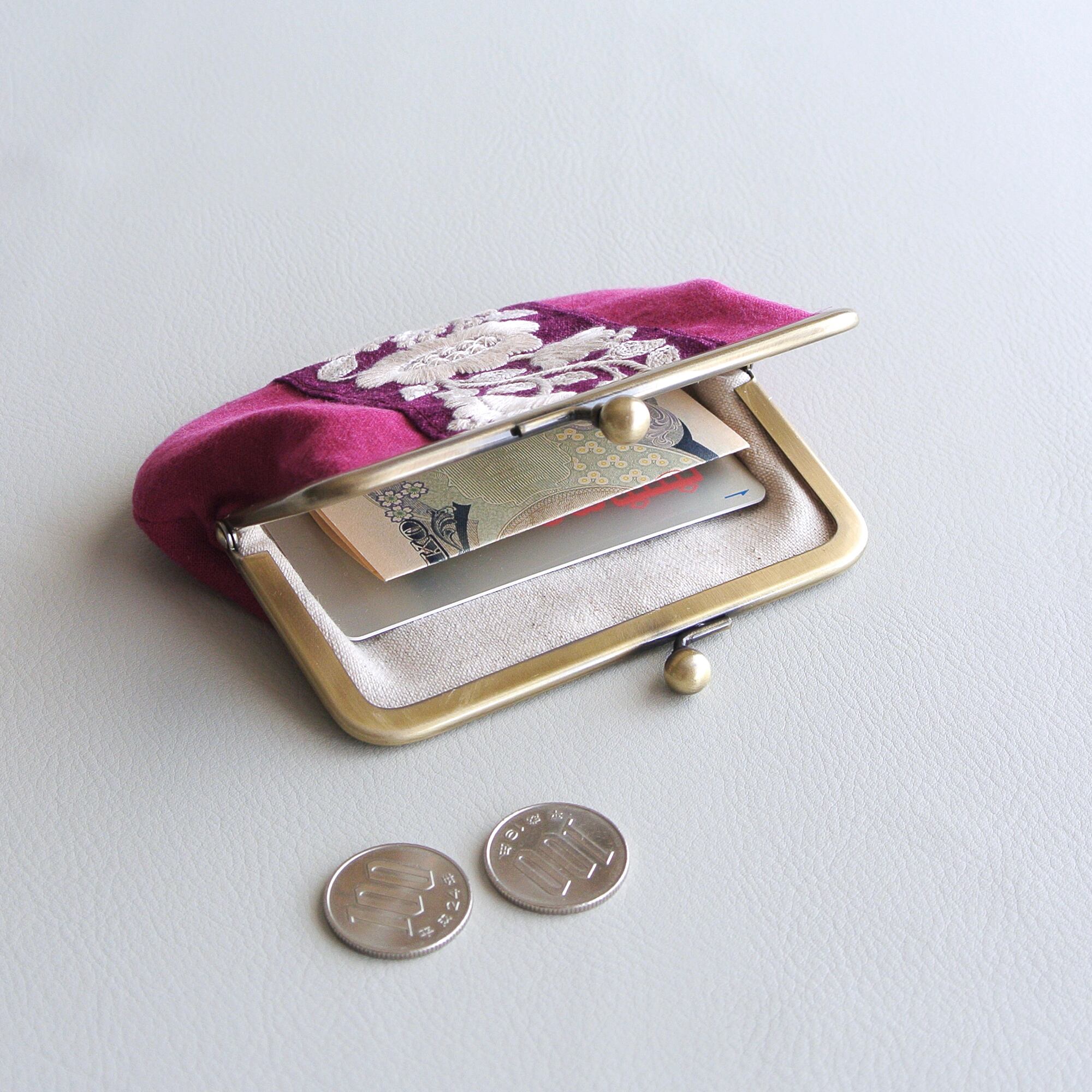 インド刺繍リボンをあしらった小回りの利くサイズのがま口ポーチ